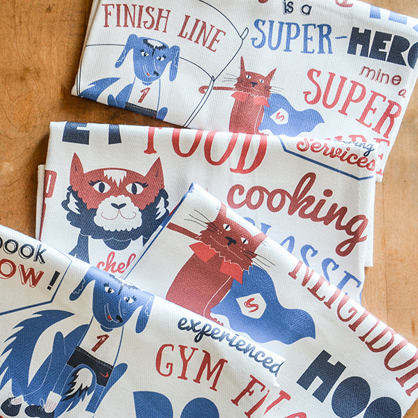 pet super-duper heroes tea towels